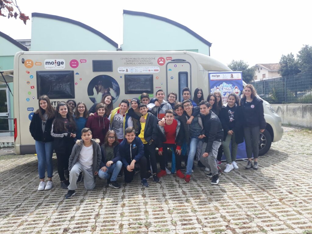 8 Aprile 2019 Il giro dell’Italia del centro mobile contro il cyberbullismo si è fermato tre giorni a Montesilvano. Il 6 e il 7 aprile 2019 il Centro mobile di sostegno e supporto contro il cyberbullismo del Moige, ha sostato in piazza Diaz, di fronte al palazzo del Comune di Montesilvano. Oggi 8 aprile 2019, le attività sono proseguite all’Istituto Comprensivo Delfico dove le nostre psicologhe hanno formato i ragazzi su come prevenire e gestire episodi di bullismo e cyberbullismo. Il personale esperto è presente anche sul Centro mobile per ogni richiesta di aiuto e di supporto. Condividi l'articolo su