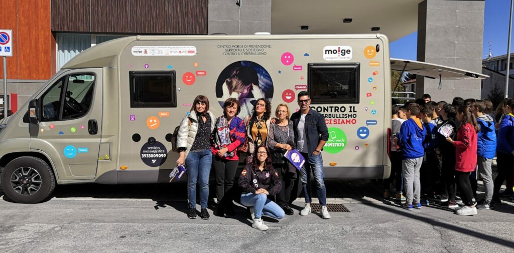 18 Ottobre 2019 Il centro mobile di prevenzione e contrasto al bullismo e al cyberbullismo del Moige continua ad attraversare l’Italia. Oggi 18 ottobre 2019 ha raggiunto l’Istituto Comprensivo Amatuzio Pallotta di Bojano, in provincia di Campobasso. Gli psicologi della task force hanno incontrato studenti, docenti e genitori per coinvolgerli in attività di prevenzione e contrasto del fenomeno. Condividi l'articolo su
