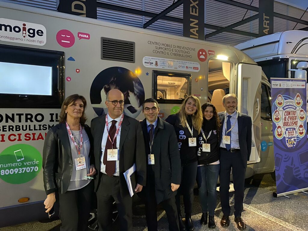 28 Novembre 2019 Il Moige presente con il suo centro mobile alla XXXVI assemblea annuale di ANCI-Associazione Nazionale Comuni Italiani. I sindaci di tutta Italia hanno potuto osservare da vicino il lavoro delle nostre psicologhe. In centinaia hanno espresso il loro apprezzamento per il lavoro svolto invitandoci a svolgere le nostre attività nel loro comune. Oggi più che mai è necessario sensibilizzare i genitori e dare sostegno alle vittime di bullismo e cyberbullismo. Anche il Direttore Italia, Amministratore Delegato e Presidente di Enel Italia S.r.l Carlo Tamburi, è venuto a trovarci per toccare con mano il progetto sostenuto, esprimendo la sua ammirazione per i risultati raggiunti ed invitandoci a proseguire il lavoro sul campo sempre con la stessa determinazione. Tamburi ha inoltre rinnovato il sostegno di Enel, uno dei principali operatori integrati globali nei settori dell’energia elettrica e gas in Italia, al progetto Moige “Giovani Ambasciatori” previsto per l’anno 2020. Condividi l'articolo su