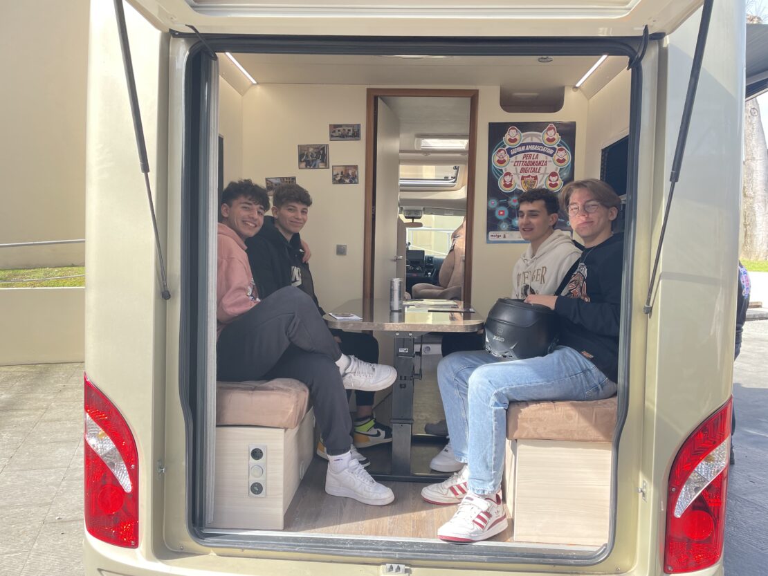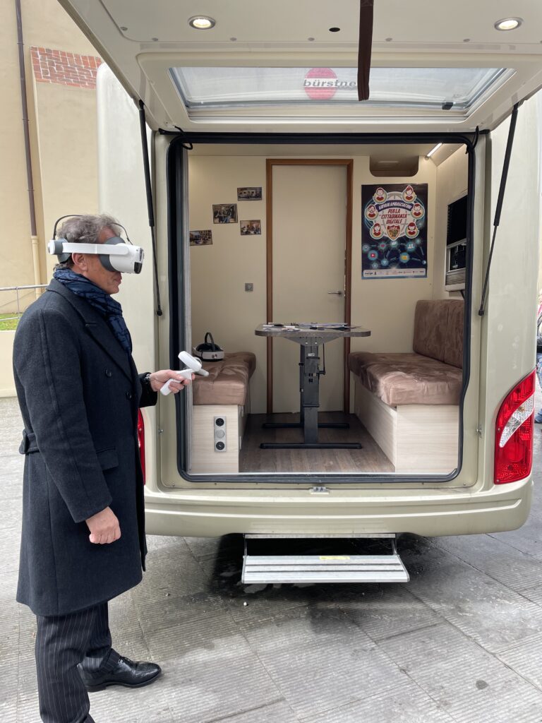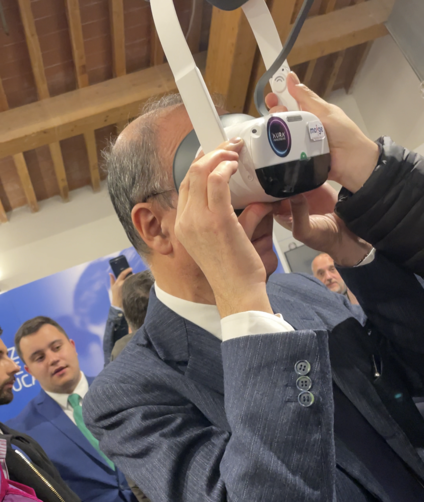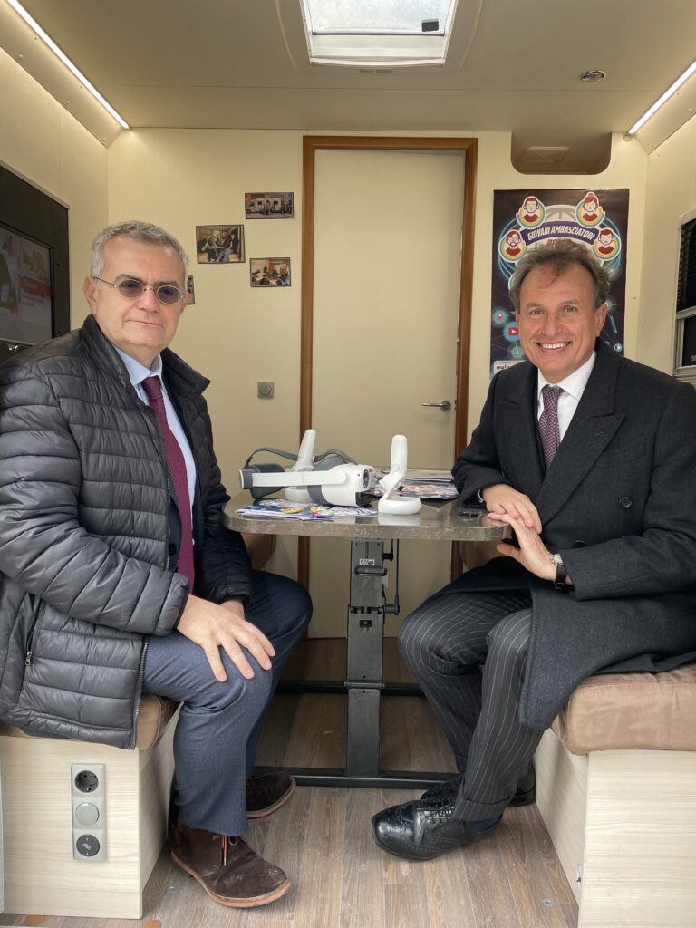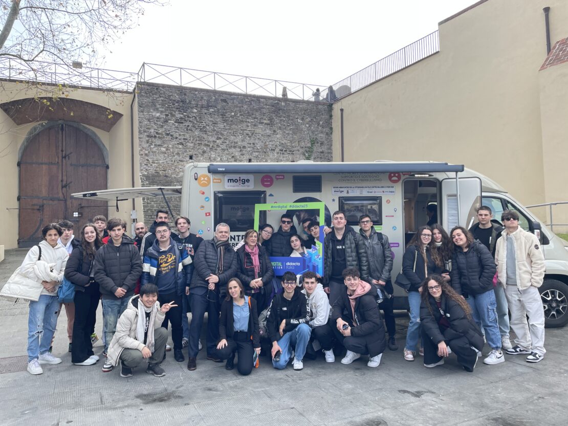 15 Marzo 2023 Un’esperienza unica all’insegna della condivisione, del confronto, dell’innovazione e della prevenzione: Fiera Didacta a Firenze! 8, 9 e 10 marzo sono stati tre giorni carichi di emozione e di divertimento. Tantissimi confronti e dibattiti, interviste e approfondimenti, il tutto inserito nella cornice più bella, quella dell’istruzione dei ragazzi. I nostri Giovani Ambasciatori del Liceo Scientifico Agnoletti di Sesto Fiorentino e Campi Bisenzio ci hanno accompagnati rendendo il messaggio del Moige concreto e vivo, quello del contrasto al cyberbullismo. Li abbiamo intervistati chiedendo il loro feedback sul progetto, hanno approfondito all’interno del Centro Mobile tematiche legate al cyberbullismo con gli psicologi Marco e Andrea, hanno provato la realtà immersiva e le varie tecnologie didattiche innovative proposte dalla Fiera! Inoltre, abbiamo partecipato ad incontri e fornito i nostri contributi nel format “Legend”: ci siamo uniti a Sport e Salute, Dipartimento per lo sport e Istituto per il credito sportivo contro bullismo e cyberbullismo. Vito Cozzoli, Presidente e AD di Sport e Salute S.p.A ha visitato il Centro Mobile Moige e spiegato il ruolo centale dello sport nella crescita valoriale ed educativa. Abbiamo anche presentato, insieme ad Aura Group l’innovativo progetto Education4School, che permette la trasformazione di contenuti educativi in realtà immersiva. Infine, l’ultimo giorno di fiera – venerdì 10 marzo- il direttore generale Moige Antonio Affinita ha incontrato il Ministro dell’Istruzione e del Merito Giuseppe Valditara, che ci ha rivelato quanto la tematica del cyberbullismo sia oggi di fondamentale importanza. Noi, come Moige, non potevano che essere lì con il nostro messaggio, il contrasto alla violenza del bullismo e quella in rete, con il mezzo che ci permette di fare molto per bambini e ragazzi, e che simboleggia il nostro messaggio con la sua sola presenza: il Centro Mobile! Sfoglia la Gallery per rivivere con noi questa magica esperienza! Maria Angela Grassi, presidente Associazione Nazionale Pedagogisti Italiani, Caterina Amariti, vicepresidente ANPE, docente e volontaria Moige, Antonio Affinita Antonio Affinita, direttore generale Moige, Vito Cozzoli, presidente e AD di Sport e Salute S.p.A e Luigi Mastrangelo, ex pallavolista italiano I Giovani Ambasciatori e…@lafisicachecipiace! Vito Cozzoli prova la tecnologia immersiva proposta da Moige in collaborazione con Aura Group, per il progetto Education4School Education4School presso lo Stand di Aura Group Il Ministro dell’Istruzione e del Merito Giuseppe Valditara prova la tecnologia immersiva proposta da Moige in collaborazione con Aura Group, per il progetto Education4School i Giovani Ambasciatori sul Centro Mobile i Giovani Ambasciatori Antonio Affinita e Vito Cozzoli Il nostro Centro Mobile! Antonio Affinita e Vito Cozzoli i Giovani Ambasciatori La presentazione di Education4School con Denis Tredese, Chied Innovation Officer di Aura Group Condividi l'articolo su