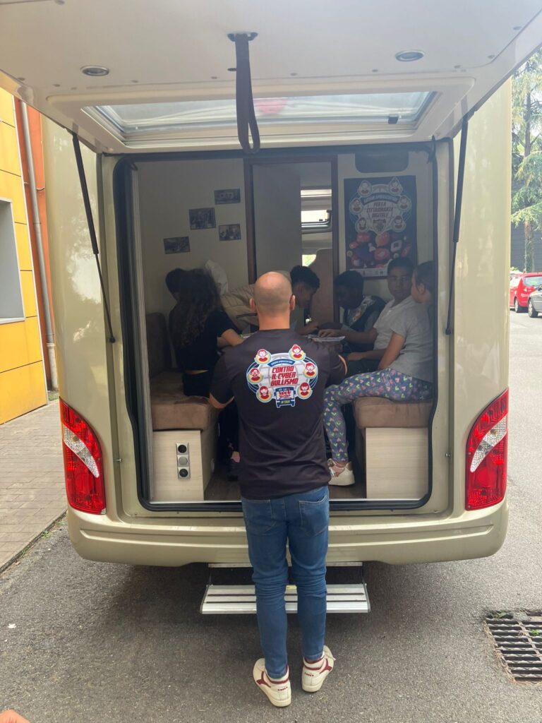 13 Ottobre 2023 Per contrastare il bullismo e il cyberbullismo, dal 5 al 7 ottobre, il nostro Centro Mobile itinerante ha fatto una prima tappa pomeridiana all’evento Comolake 2023 di Cernobbio, di cui il Moige, quest’anno è stato Social Partner. Nelle mattine successive ha raggiunto Como incontrando due scuole del territorio: l’IC di Como Rebbio e l’Istituto Matilde di Canossa. All’interno delle scuole è stato possibile usufruire di uno sportello d’ascolto e ricevere consulenze con due psicologi esperti. Tra le attività sono state anche avviate sessioni di formazione e distribuzione di materiale informativo sul tema del bullismo e del cyber risk. Formazione in aula A conclusione dell’evento, nella splendida cornice del Teatro sociale di Como, il sottosegretario Alessio Butti ha consegnato ad alcuni Giovani Ambasciatori l’attestato di nomina per “il lavoro” che questi ragazzi svolgeranno per aiutare e supportare i loro coetanei ad un utilizzo corretto del web. Ragazzi nel Centro Mobile con lo psicologo esperto #giovaniambasciatori Condividi l'articolo su