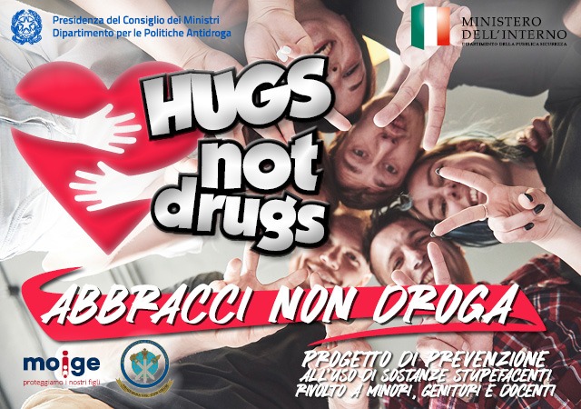 “Hugs not Drugs” è il progetto realizzato dal MOIGE e dalla DCSA-Direzione Centrale per i Servizi Antidroga, con il contributo della Presidenza del Consiglio dei Ministri – Dipartimento per le politiche antidroga per offrire ai ragazzi, ai genitori e ai loro insegnanti un’informazione corretta ed autorevole sulla pericolosità delle sostanze stupefacenti e sulle conseguenze riconducibili al suo utilizzo, contribuendo a diffondere la cultura della legalità nella popolazione giovanile. Il progetto è destinato alle scuole secondarie di I e II grado su tutto il territorio nazionale.