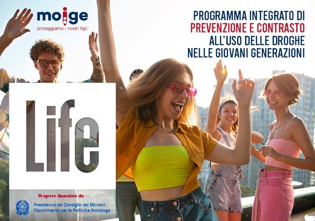 “Life”, il progetto ideato da MOIGE, Movimento Italiano Genitori, e finanziato dal Dipartimento per le Politiche Antidroga, ha come obiettivo primario quello di sensibilizzare genitori, insegnanti e, soprattutto, ragazzi tra gli 11 e i 19 anni, riguardo al tema della tossicodipendenza in età giovanile.